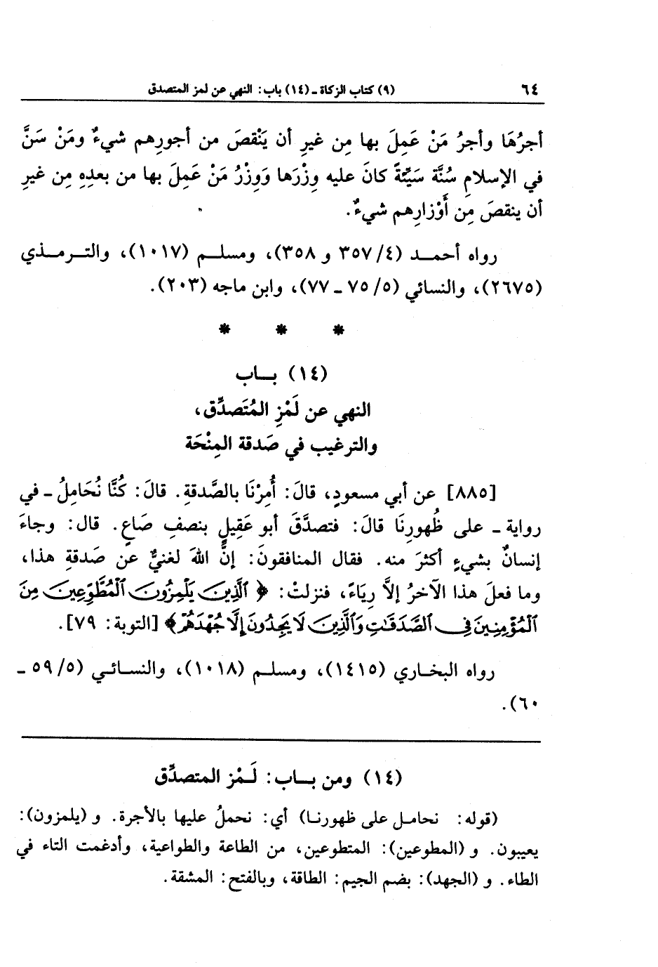 (14) باب النهي عن لَمزِ المتصدِّق والترغيب في صدقة المِنحَة