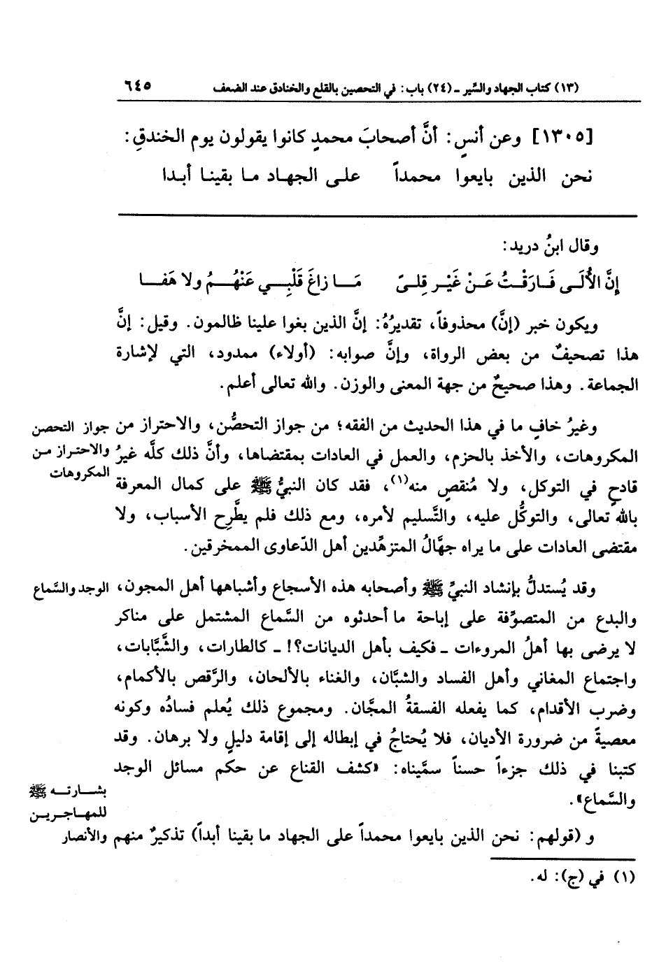 [1305] وعَن أَنَسٍ: أَنَّ أَصحَابَ مُحَمَّدٍ كَانُوا يَقُولُونَ يَومَ الخَندَقِ: