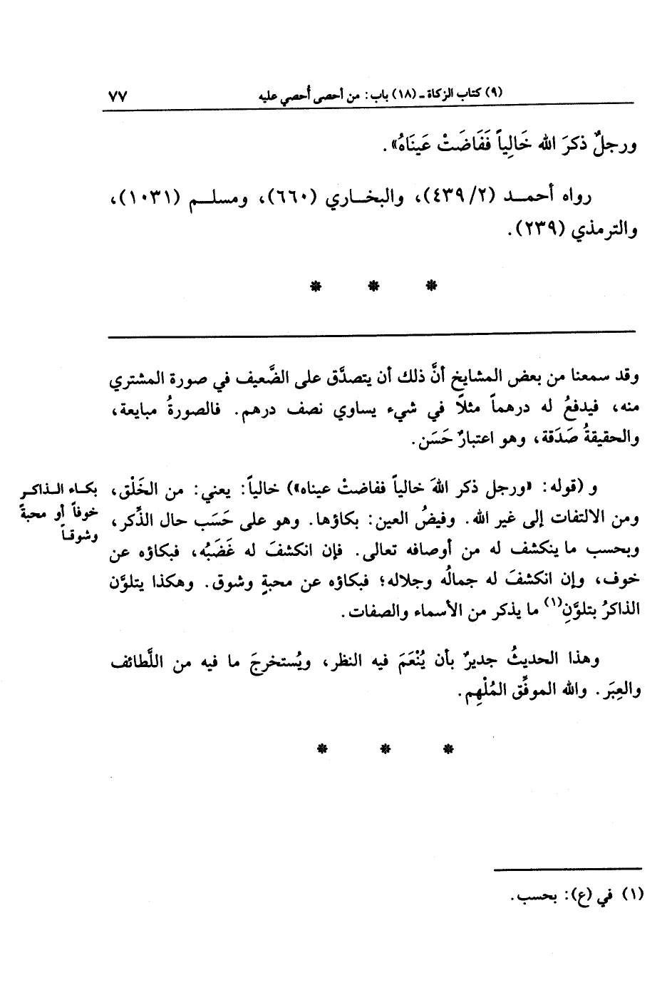 وَرَجُلٌ ذَكَرَ اللهَ خَالِيًا فَفَاضَت عَينَاهُ).