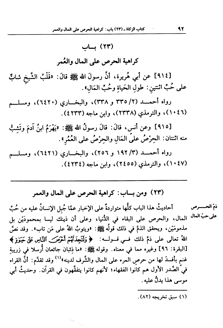 (23) ومن باب: كراهية الحرص على المال والعمر