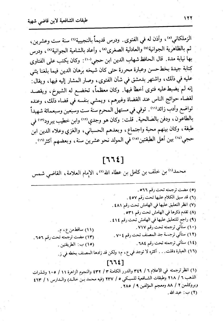 - مُحَمَّد بن خلف بن كَامِل بن عَطاء الله الإِمَام الْعَلامَة القَاضِي شمس