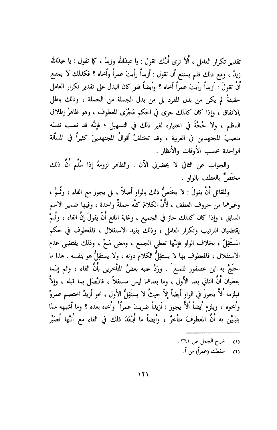 والجواب عن الثاني لا يحضرني الآن. والظاهر لزومه إذا سلم أن ذلك مختص بالعطف بالواو.
