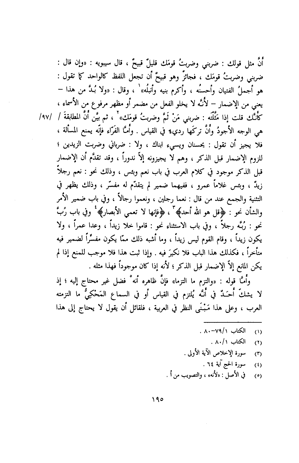 وأما قوله: "والتزم ما التزما" فإن ظاهره أنه فضل غير محتاج إليه؛ إذ لا يشك أحد في أنه يلتزم في القياس أو في السماع المحكي ما التزمته العرب، وعلى هذا مبنى النظر في العربية، فلقائل أن يقول لا يحتاج إلى هذا