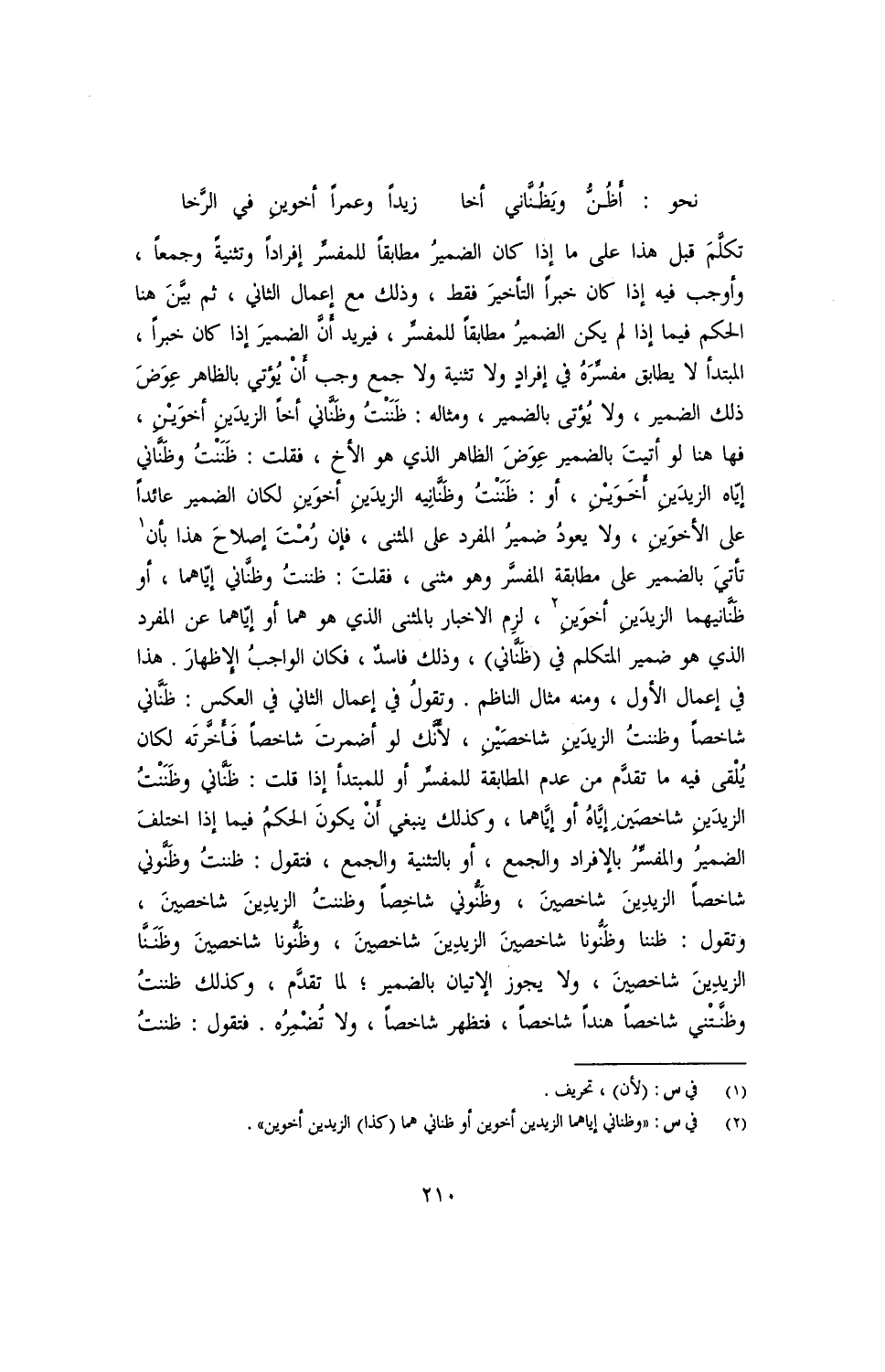 نحو: أظن ويظناني أخا ... زيدًا وعمرًا أخوين في الرخا