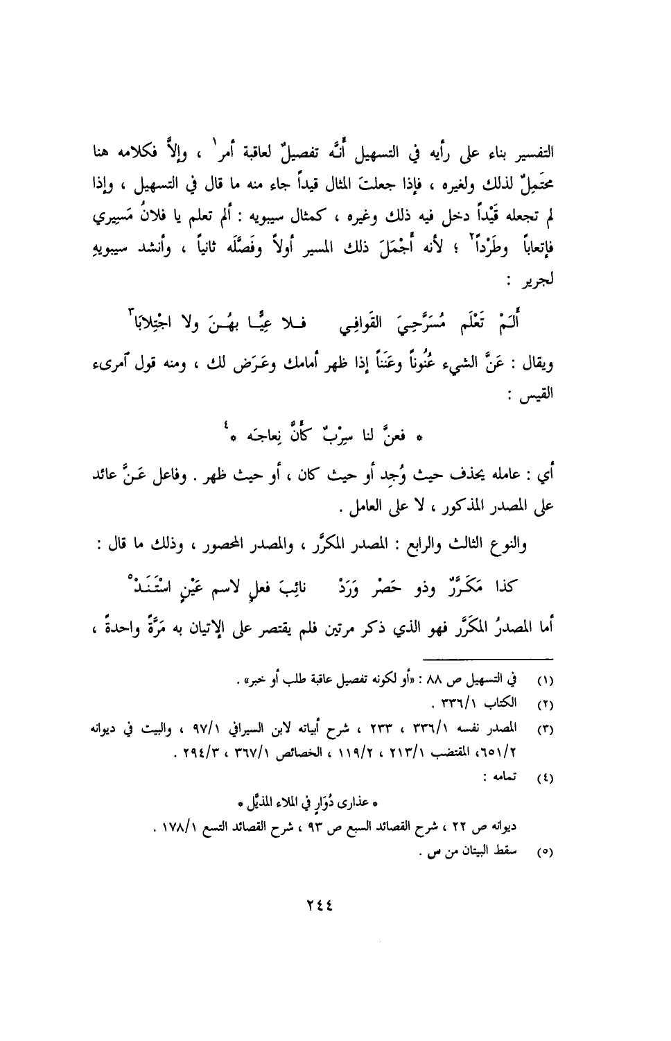 والنوع الثالث والرابع: المصدر المكرر، والمصدر المحصور، وذلك ما قال: