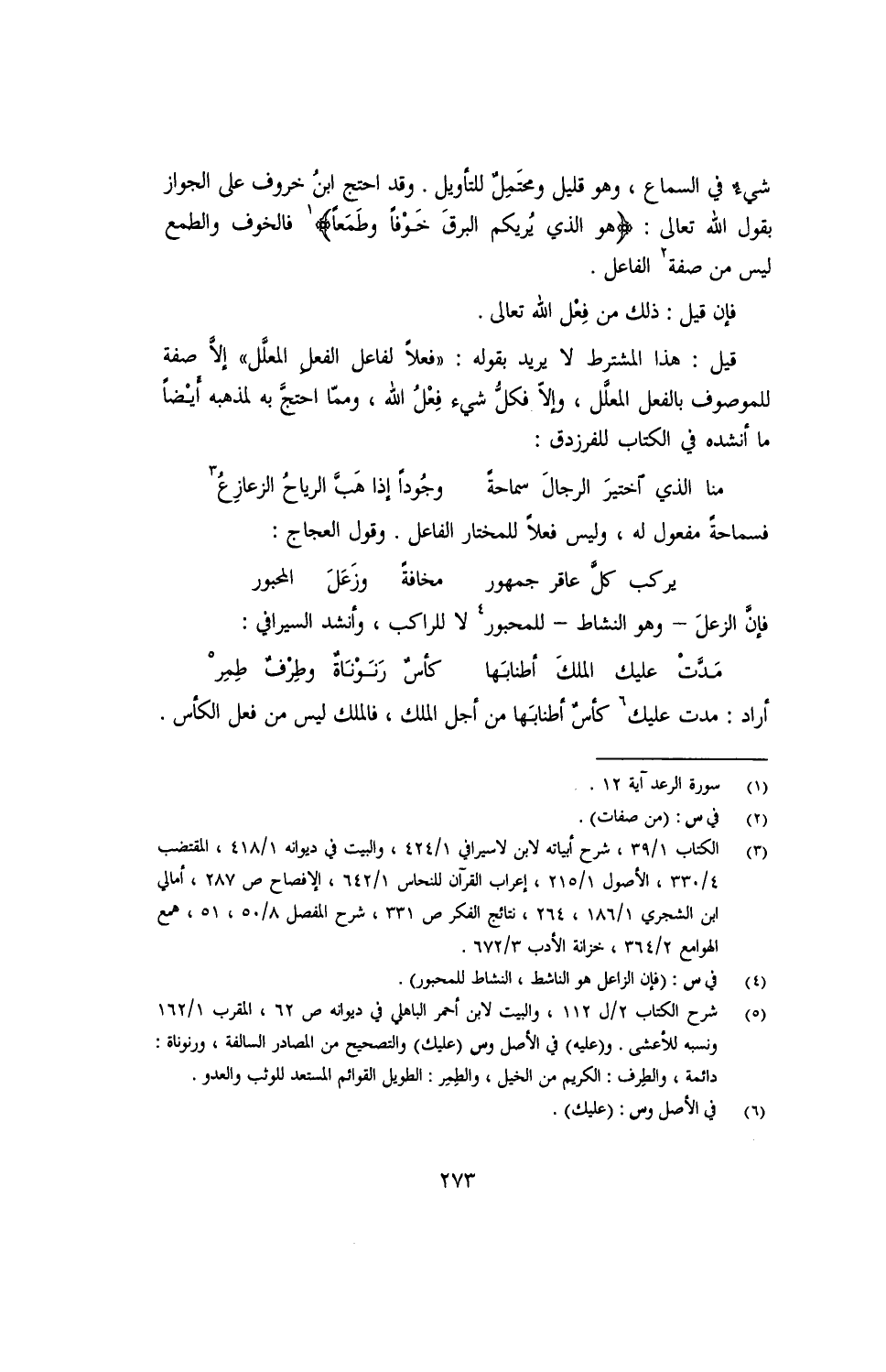 قيل: هذا المشترط لا يريد بقوله: " فعلًا لفاعل الفعل المعلّل" إلا صفة للموصوف بالفعل المعلّل، وإلا فكل شيء فعل الله، ومما احتجّ به لمذهبه أيضًا ما أنشده في الكتاب للفرزدق:
