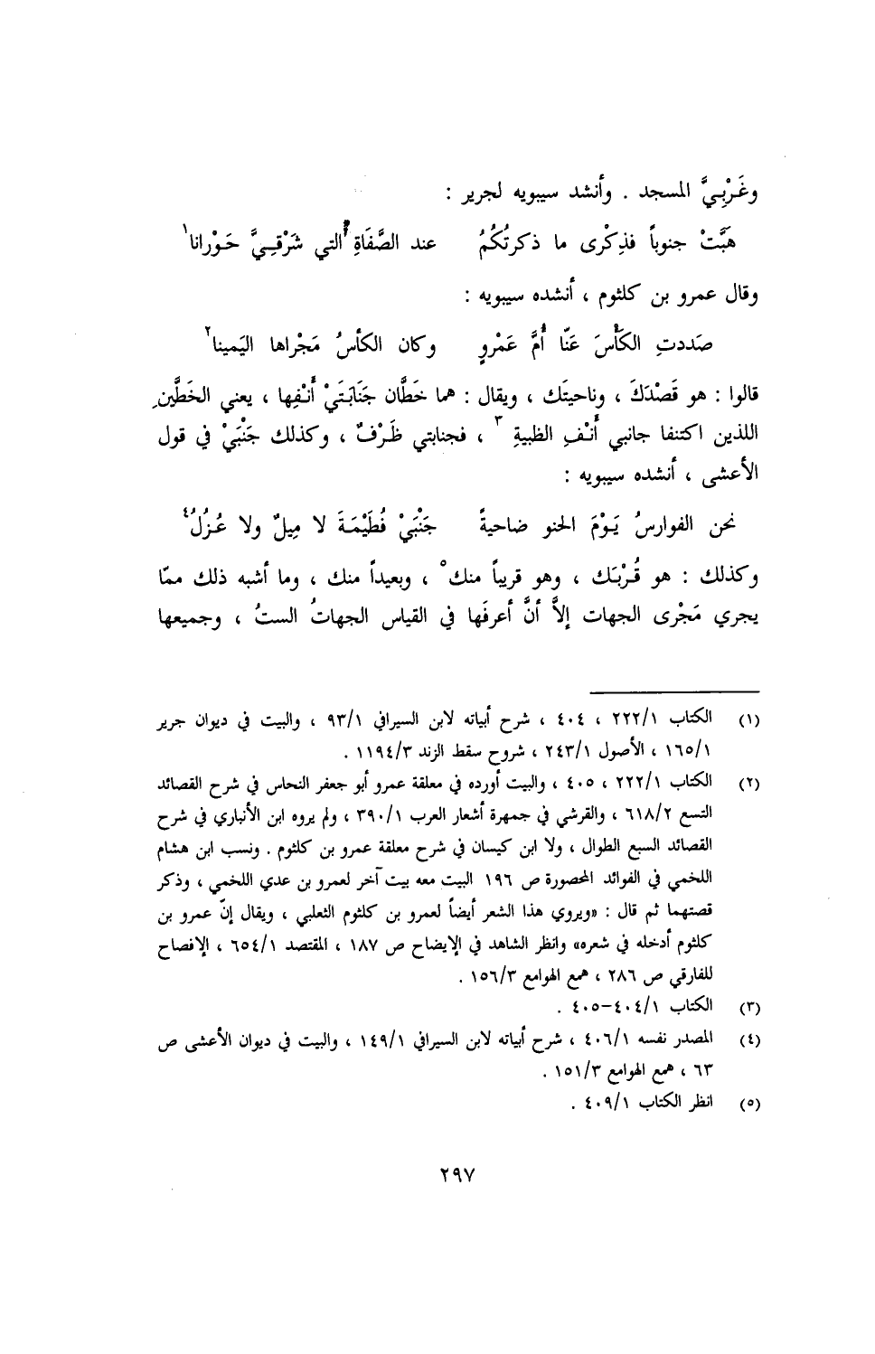 وكذلك: هو قُربَك، وهو قريبًا منك، وبعيدًا منك، وما أشبه ذلك مما يجري مجرى الجهات إلا أنّ أعرفها في القياس الجهات الست، وجميعها