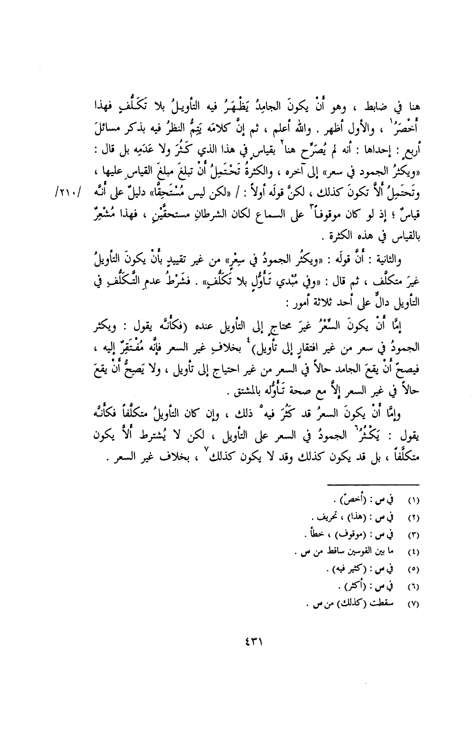 وإما أن يكون السعر قد كثر فيه ذلك، وإن كان التأويل متكلفًا فكأنه يقول: يكثر الجمود في السعر على التأويل، لكن لا يشترط ألا يكون متكلفًا، بل قد يكون كذلك وقد لا يكون كذلك، بخلاف غير السعر.