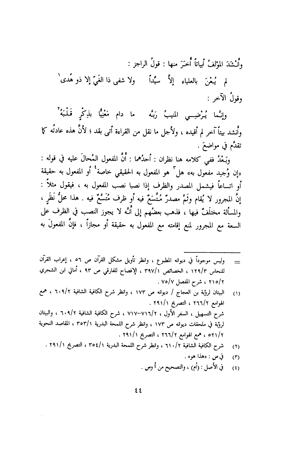 وأَنشَدَ المؤلفُ أبياتًا أُخَرْ منها: قولُ الراجز: