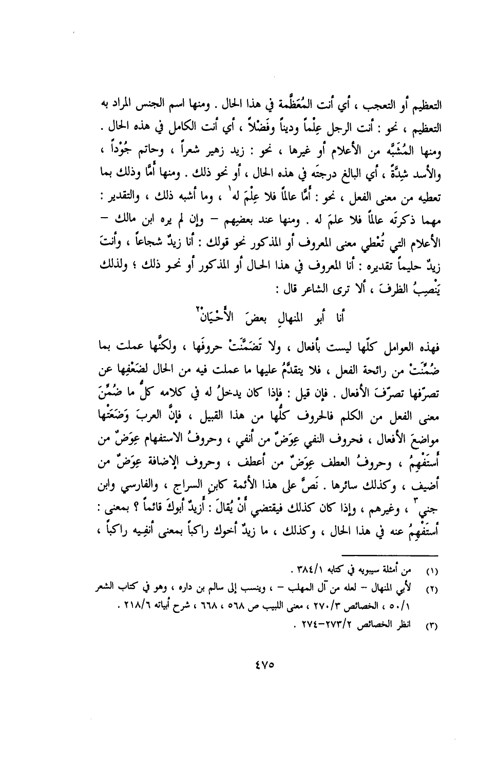 فهذه العوامل كلها ليس بأفعال، ولا تضمنت حروفها، ولكنها عملت بما ضمنت من رائحة الفعل، فلا يتقدم عليها ما عملت فيه من الحال لضعفها عن تصرفها تصرف الأفعال. فإن قيل: فإن كان يدخل له في كلامه كل ما ضمن معنى الفعل من الكلم فالحروف كلها من هذا القبيل، فإن العرب وضعتها مواضع الأفعال، فحروف النفي عوض من أنفي، وحروف الاستفهام عوض من أستفهم، وحروف العطف عوض من أعطف، وحروف الإضافة عوض من أضيف، وكذلك سائرها. نص على هذه الأئمة كابن السراج، والفارسي وابن جني، وغيرهم، وإذا كان كذلك فيقتضي أن يقال: أزيد أبوك قائمًا؟ بمعنى: أستفهم عنه في هذا الحال، وكذلك، ما زيد أخوك راكبًا بمعنى أنفيه راكبًا،