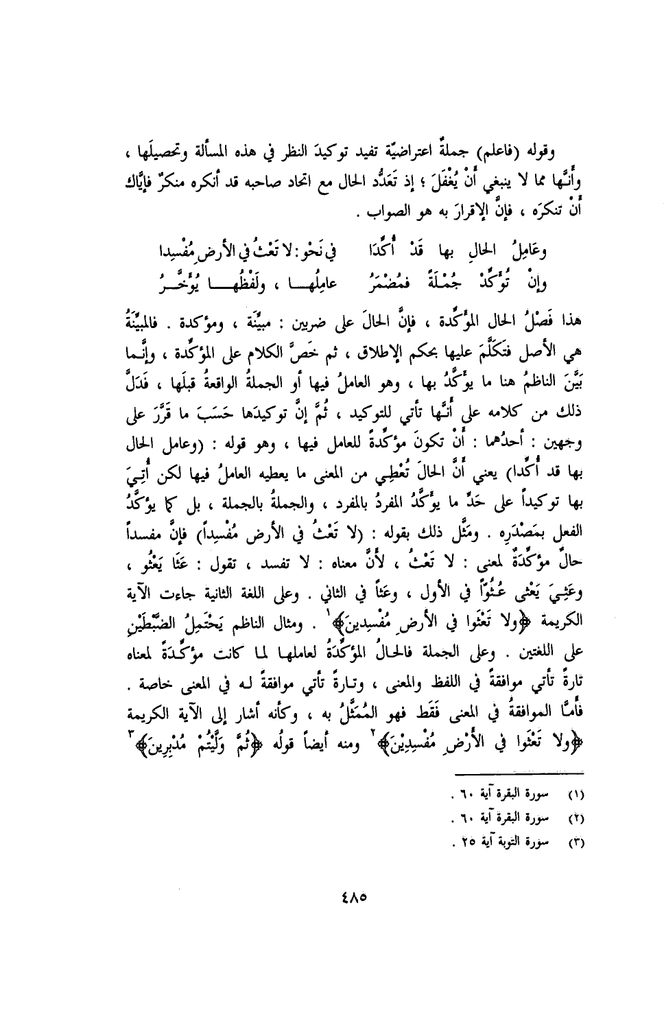 وعامل الحال بها قد أكدا ... في نحو: لا تعث في الأرض مفسدا