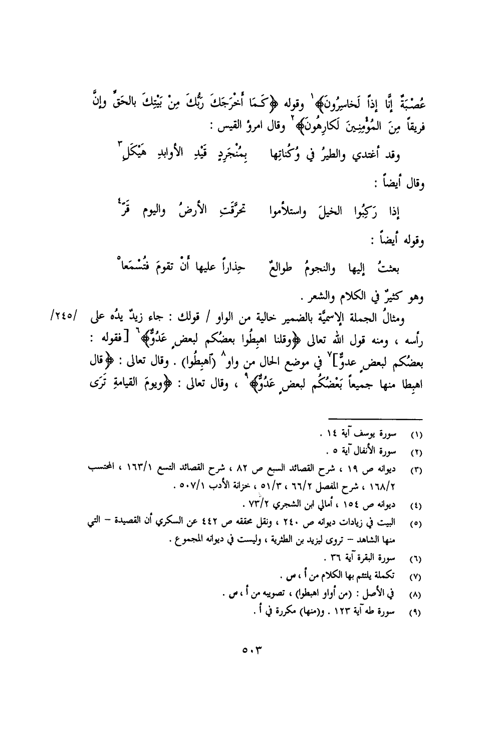 عصبة إنا إذًا لخاسرون} وقوله {كما أخرجك ربك من بيتك بالحق وغن فريقًا من المؤمنين لكارهون} وقال امرئ القيس:
