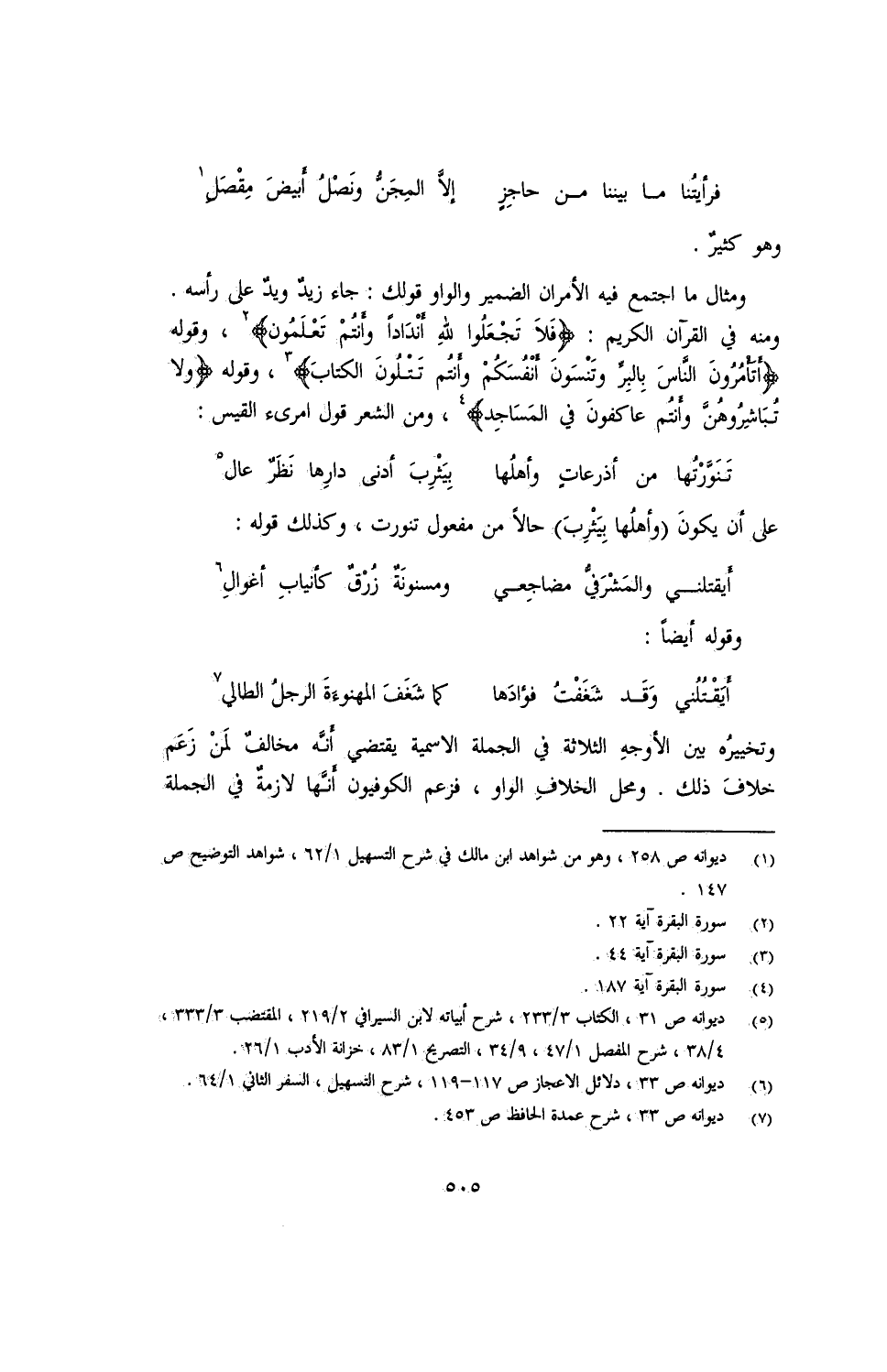 وتخييره بين الوجه الثلاثة في الجملة الاسمية يقتضي أنه مخالف لمن زعم خلاف ذلك. ومحل الخلاف الواو، فزعم الكوفيون أنه لازمة في الجملة