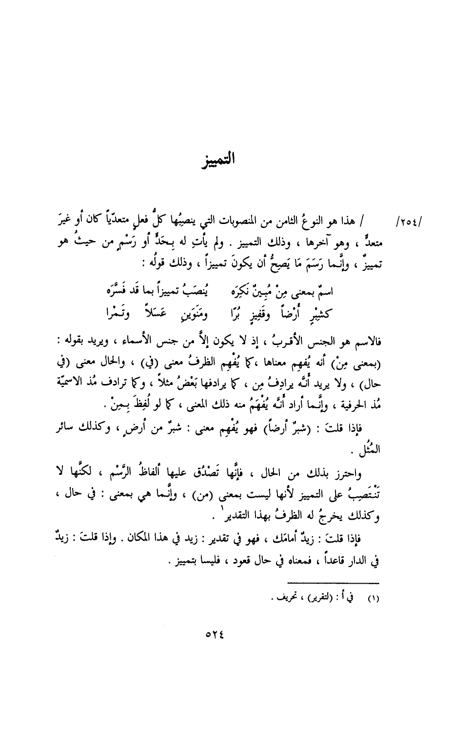/ هذا خو النوع الثامن من المنصوبات التي ينصبها كل فعل متعديًا كان أو غير متعد، وهو آخرها، وذلك التمييز. ولم يأت له بحد أو رسمٍ من حيث هو تمييز، وإنما رسم ما يصح أن يكون تمييزًا، وذلك قوله: