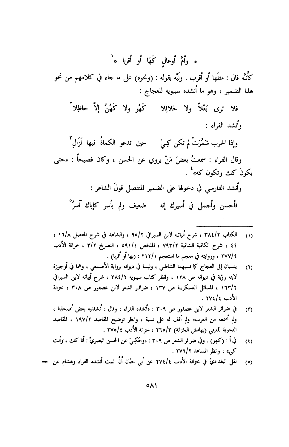 كأنه قال: مثلها أو أقرب. ونبه بقوله: (ونحوه) على ما جاء في كلامهم من نحو هذا الضمير، وهو ما أنشده سيبويه للعجاج: