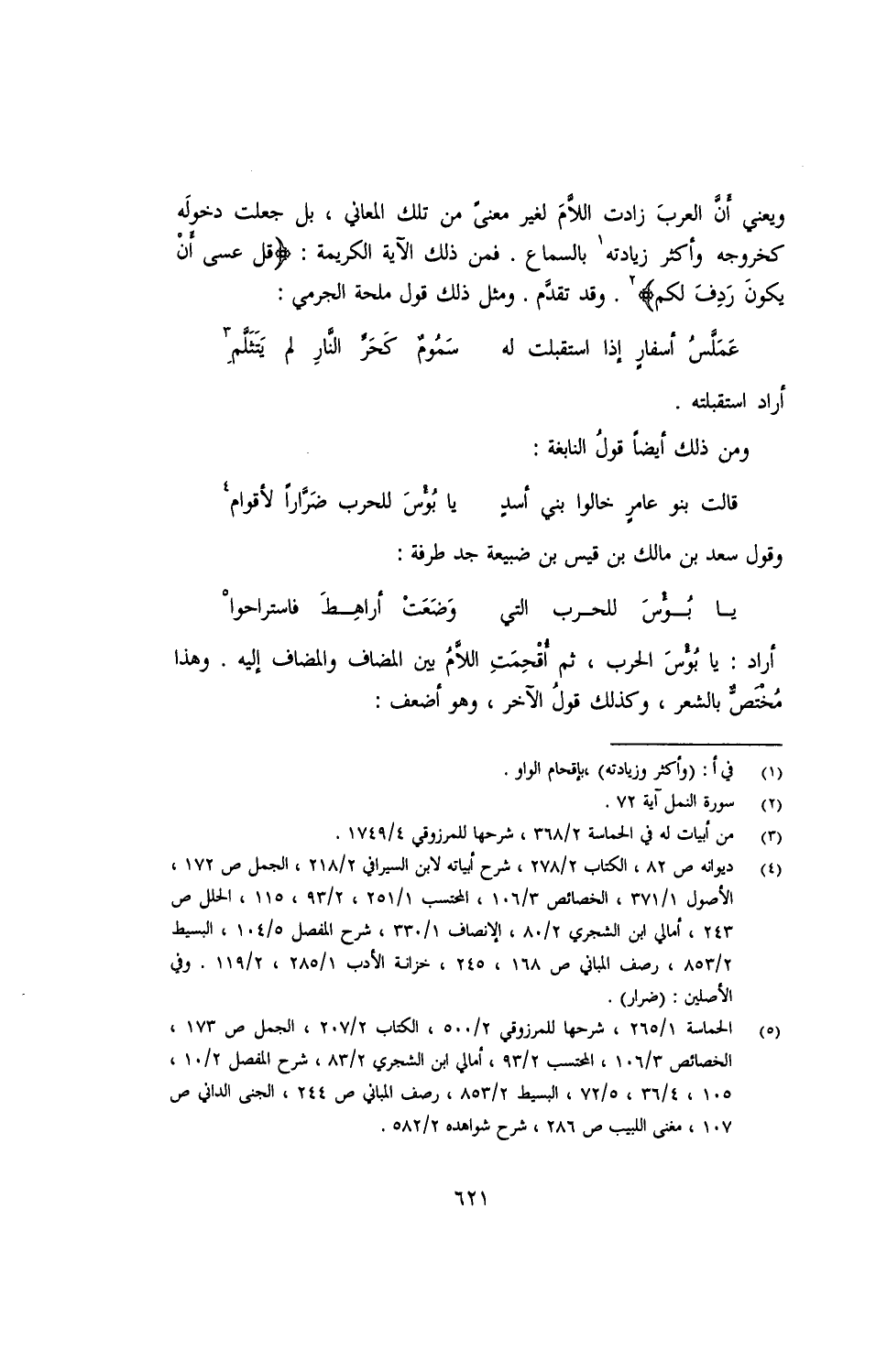 أراد: يا بوس الحرب، ثم أقحمت اللام بين المضاف والمضاف إليه. وهذا مختص بالشعر، وكذلك قول الآخر، وهو أضعف: