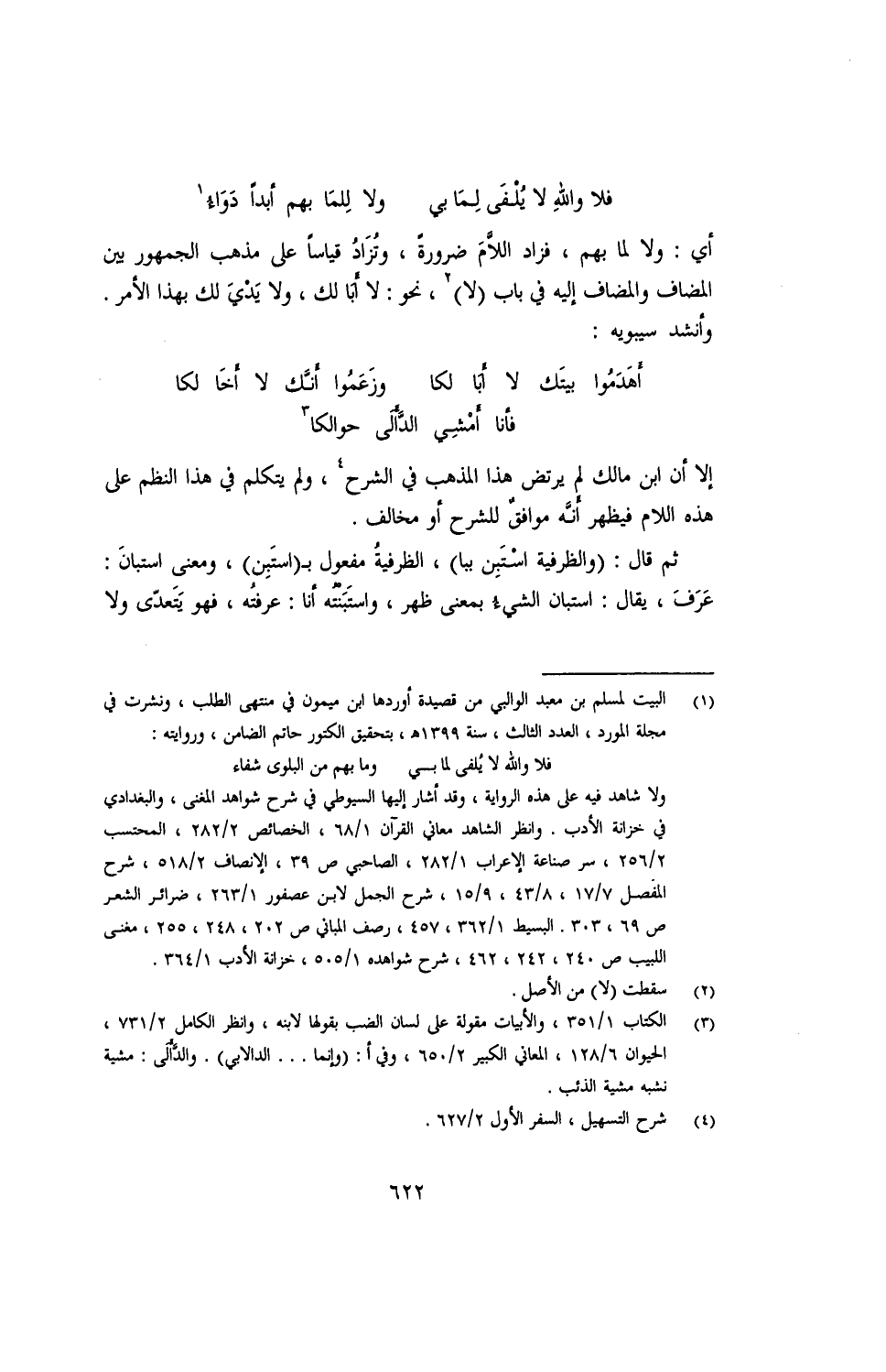 إلا أن ابن مالك لم يرتض هذا المذهب في الشرح، ولم يتكلم في هذا النظم على هذه اللام فيظهر أنه موافق للشرح أو مخالف.