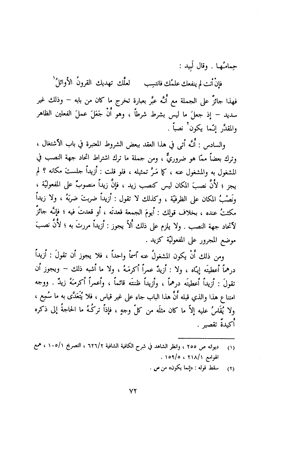 فهذا حائزٌ على الجملة مع أنّه عبّر بعبارة تخرج ما كان من بابه -وذلك غير سديد- إذ جعلَ ما ليس بشرطٍ شرطًا, وهو أن جعلَ عملَ الفعلين الظاهر والمقدّر إنّما يكون نصبًا.