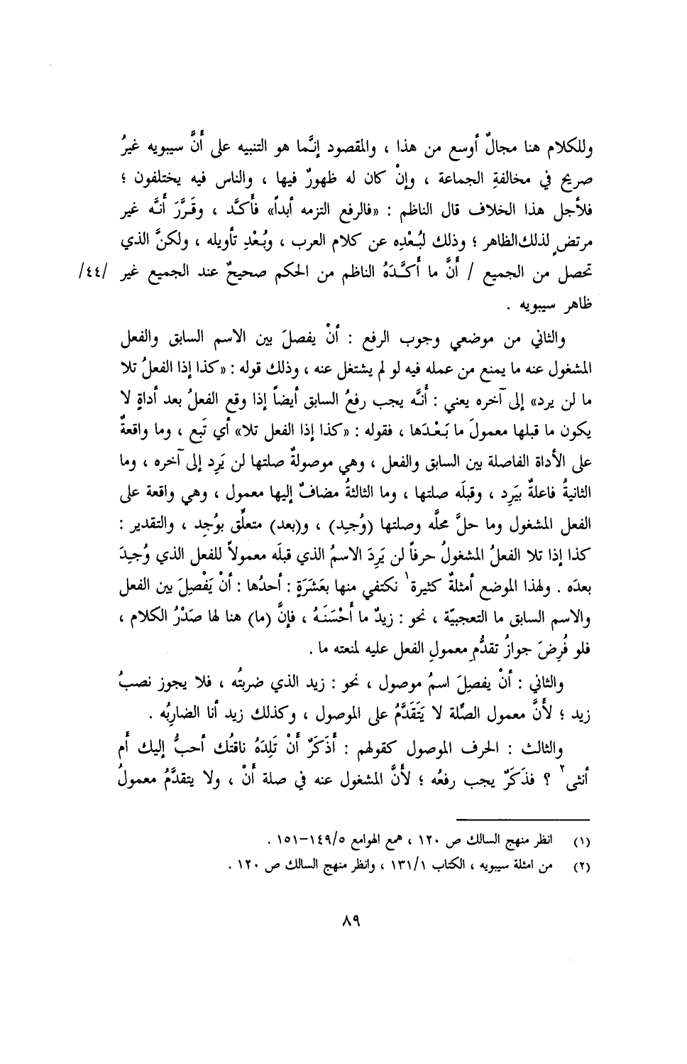 والثاني: أن يفصل اسمٌ موصول, نحو: زيد الذي ضربتُه, فلا يجوز نصبُ زيد؛ لأنّ معمول الصلّة لا يتقدّم على الموصول, وكذلك زيد أنا الضارِبُه.