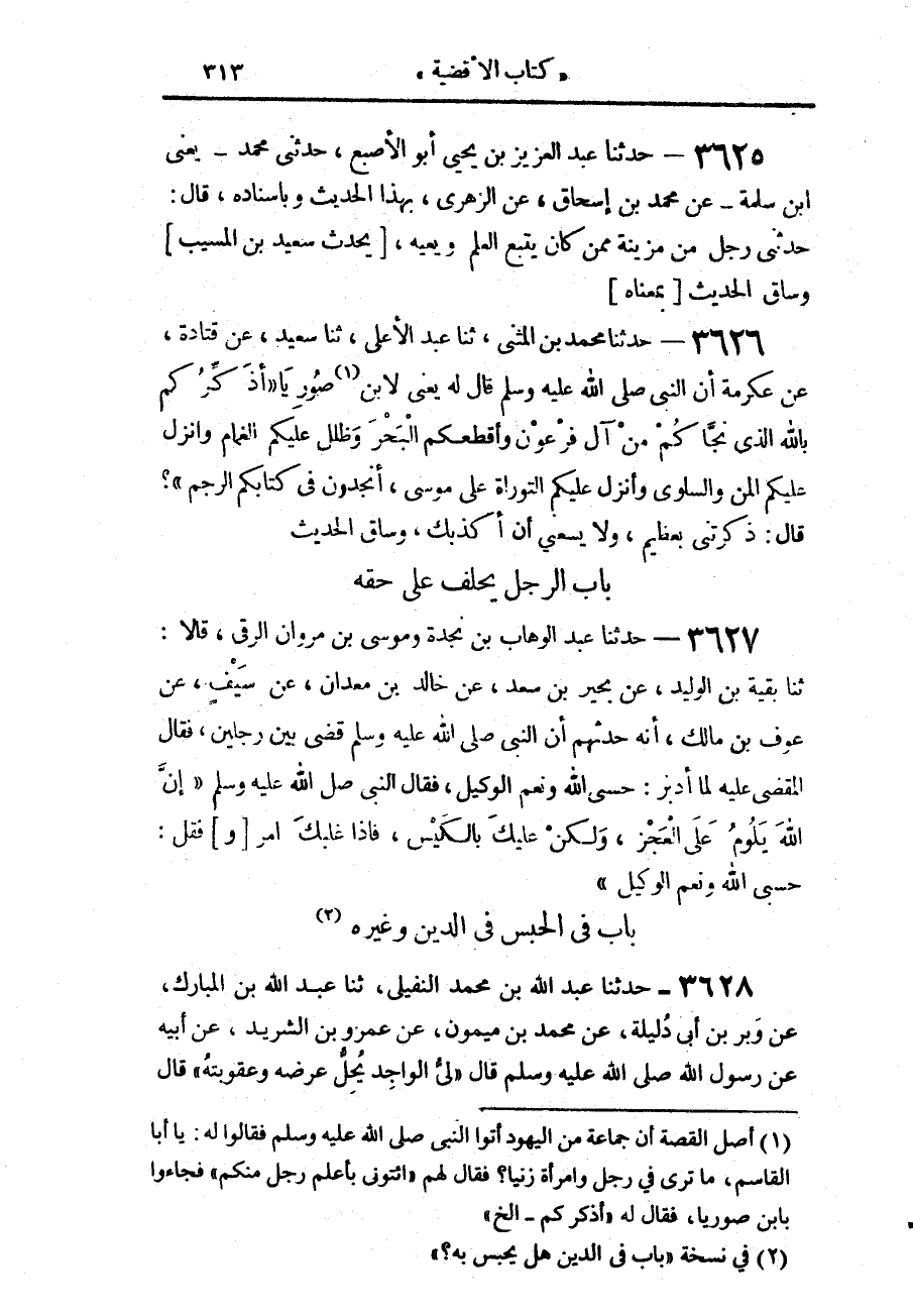 3626 - حَدَّثَنَا مُحَمَّدُ بْنُ الْمُثَنَّى، حَدَّثَنَا عَبْدُ الْأَعْلَى، حَدَّثَنَا سَعِيدٌ، عَنْ قَتَادَةَ، عَنْ عِكْرِمَةَ، أَنَّ النَّبِيَّ صَلَّى اللهُ عَلَيْهِ وَسَلَّمَ، قَالَ لَهُ: يَعْنِي لِابْنِ صُورِيَا: «§أُذَكِّرُكُمْ بِاللَّهِ الَّذِي نَجَّاكُمْ مِنْ آلِ فِرْعَوْنَ، وَأَقْطَعَكُمُ الْبَحْرَ، وَظَلَّلَ عَلَيْكُمُ الْغَمَامَ، وَأَنْزَلَ عَلَيْكُمُ الْمَنَّ، وَالسَّلْوَى، وَأَنْزَلَ عَلَيْكُمُ التَّوْرَاةَ عَلَى مُوسَى أَتَجِدُونَ فِي كِتَابِكُمُ الرَّجْمَ؟»، قَالَ: ذَكَّرْتَنِي بِعَظِيمٍ، وَلَا يَسَعُنِي أَنْ أَكْذِبَكَ وَسَاقَ الْحَدِيثَ