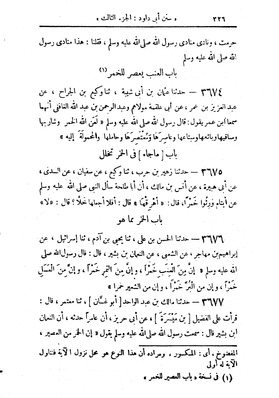 3676 - حَدَّثَنَا الْحَسَنُ بْنُ عَلِيٍّ، حَدَّثَنَا يَحْيَى بْنُ آدَمَ، حَدَّثَنَا إِسْرَائِيلُ، عَنْ إِبْرَاهِيمَ بْنِ مُهَاجِرٍ، عَنِ الشَّعْبِيِّ، عَنِ النُّعْمَانِ بْنِ بَشِيرٍ، قَالَ: قَالَ رَسُولُ اللَّهِ صَلَّى اللهُ عَلَيْهِ وَسَلَّمَ: «§إِنَّ مِنَ الْعِنَبِ خَمْرًا، وَإِنَّ مِنَ التَّمْرِ خَمْرًا، وَإِنَّ مِنَ الْعَسَلِ خَمْرًا، وَإِنَّ مِنَ البُرِّ خَمْرًا، وَإِنَّ مِنَ الشَّعِيرِ خَمْرًا»