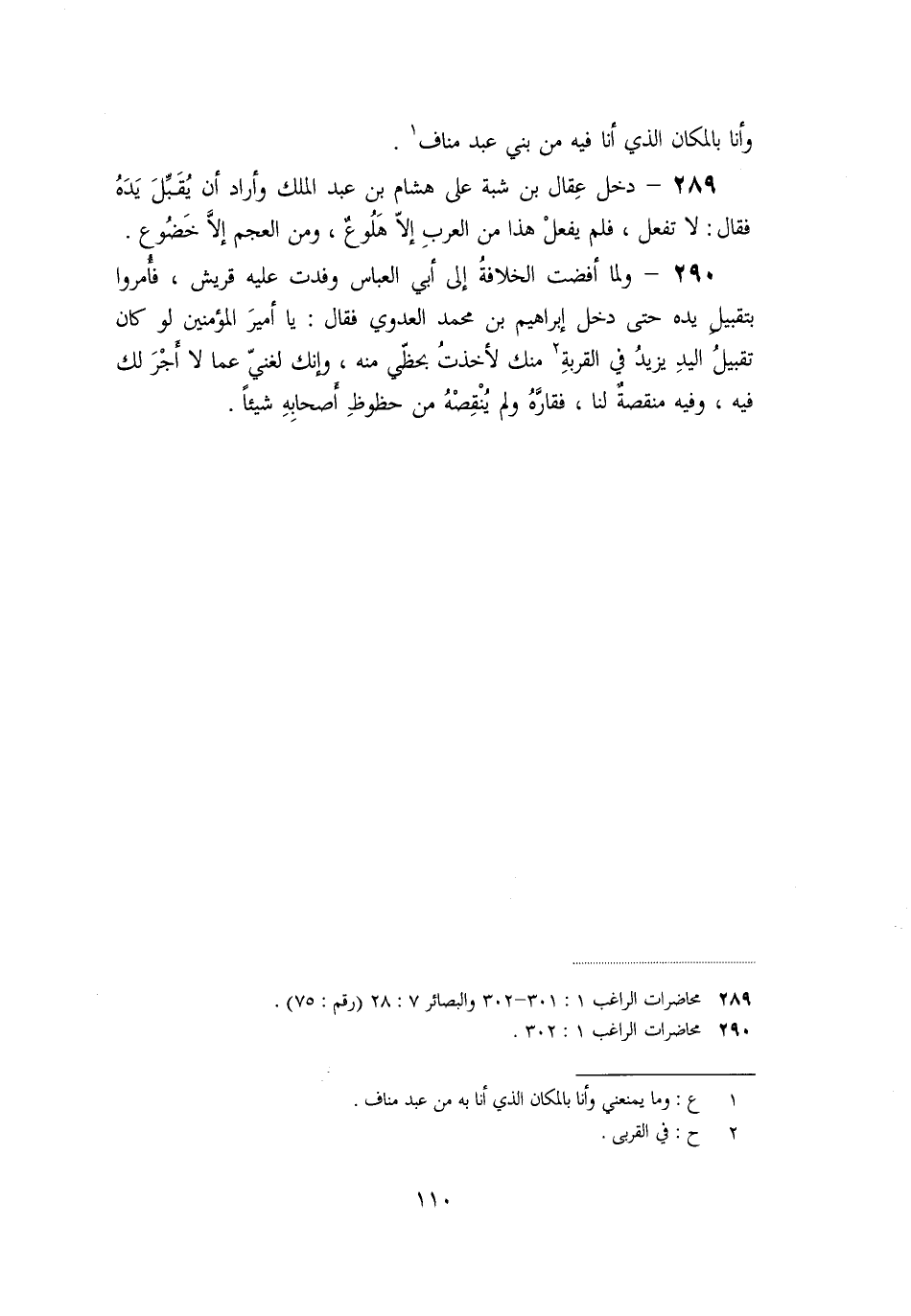 «289» - دخل عقال بن شبة على هشام بن عبد الملك وأراد أن يقبّل يده فقال: لا تفعل، فلم يفعل هذا من العرب إلّا هلوع، ومن العجم إلّا خضوع.