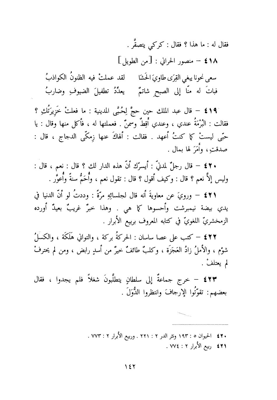 «420» - قال رجل لمدنيّ: أيسرّك أنّ هذه الدار لك؟ قال: نعم، قال: