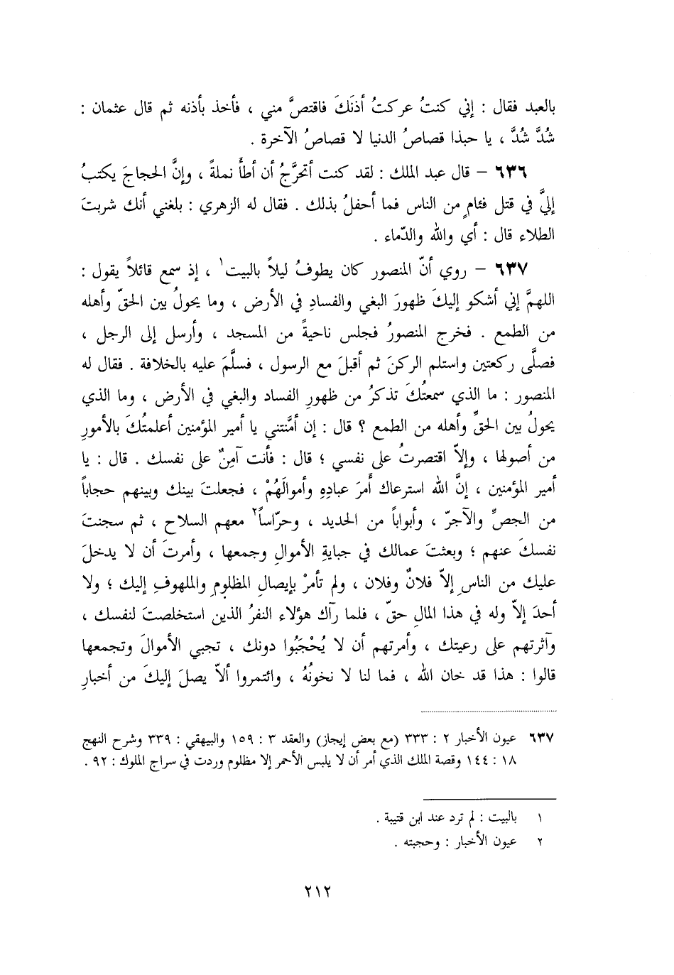 «637» - روي أنّ المنصور كان يطوف ليلا بالبيت [1] ، إذ سمع قائلا يقول: