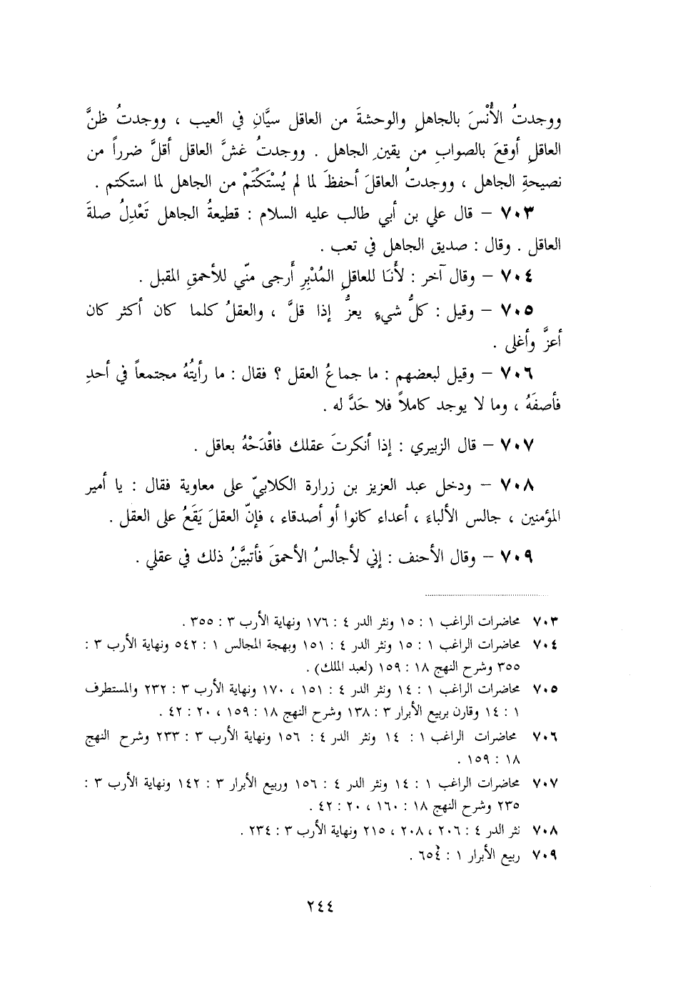 «704» - وقال آخر: لأنا للعاقل المدبر أرجى منّي للأحمق المقبل.