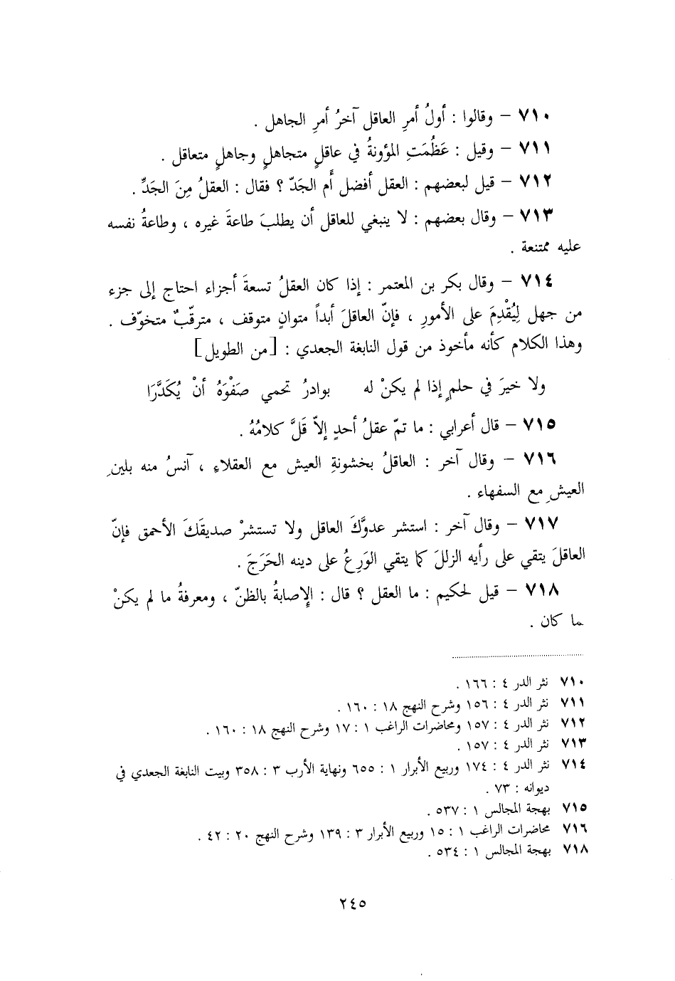 «710» - وقالوا: أول أمر العاقل آخر أمر الجاهل.