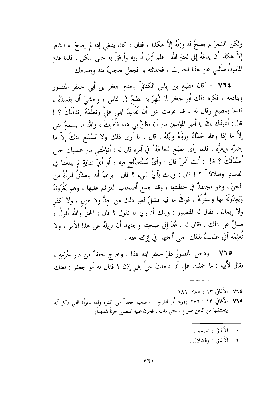 «765» - ودخل المنصور دار جعفر ابنه هذا، وخرج جعفر من دار حرمه، فقال لأبيه: ما حملك على أن دخلت عليّ بغير إذن؟ فقال له أبو جعفر: لعنك