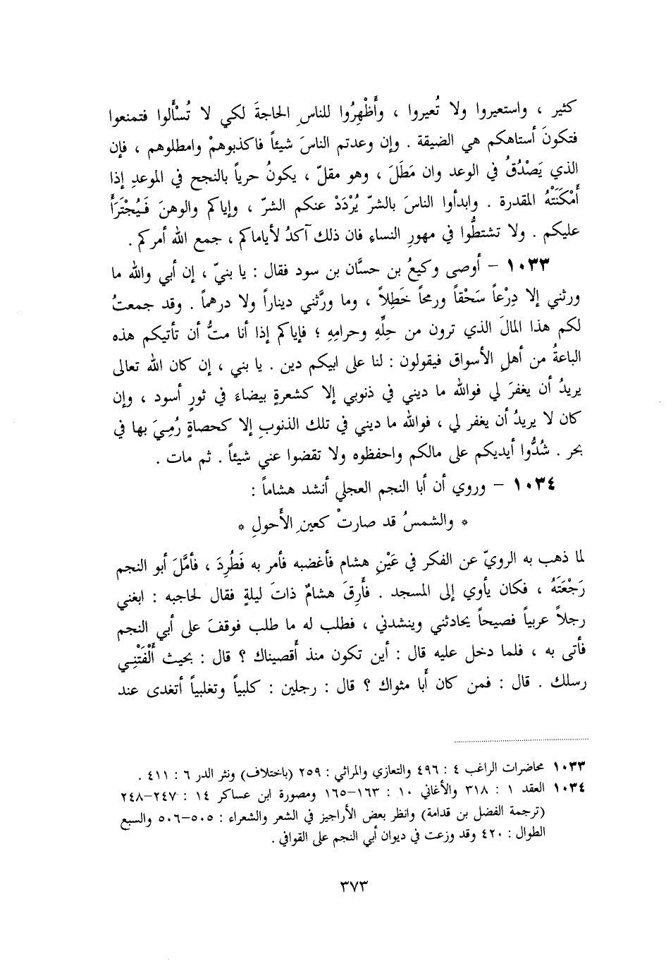 «1034» - وروي أن أبا النجم العجلي أنشد هشاما: