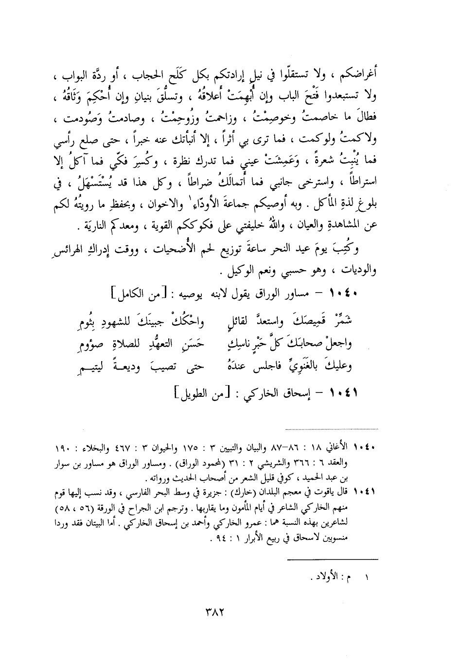«1040» - مساور الوراق يقول لابنه يوصيه: [من الكامل]
