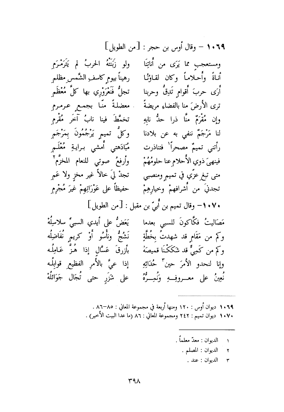 «1069» - وقال أوس بن حجر: [من الطويل]