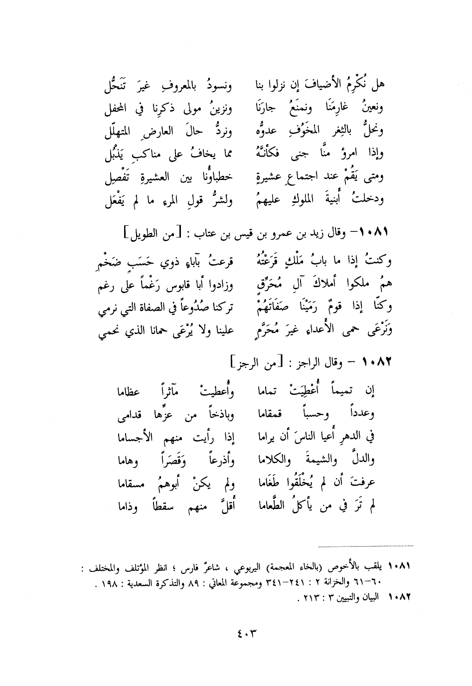 «1081» - وقال زيد بن عمرو بن قيس بن عتاب: [من الطويل]