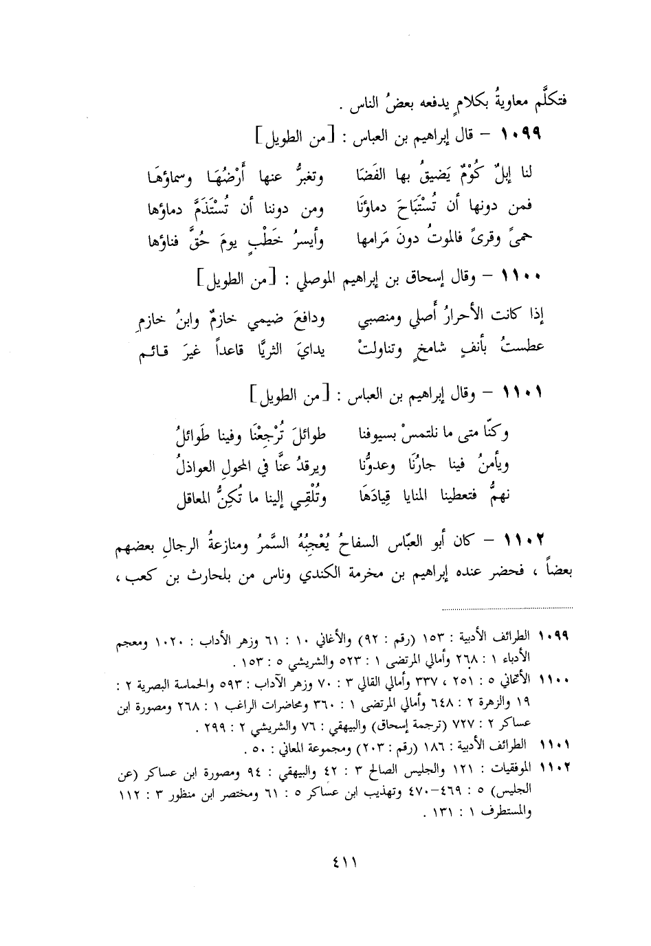 «1099» - قال إبراهيم بن العباس: [من الطويل]