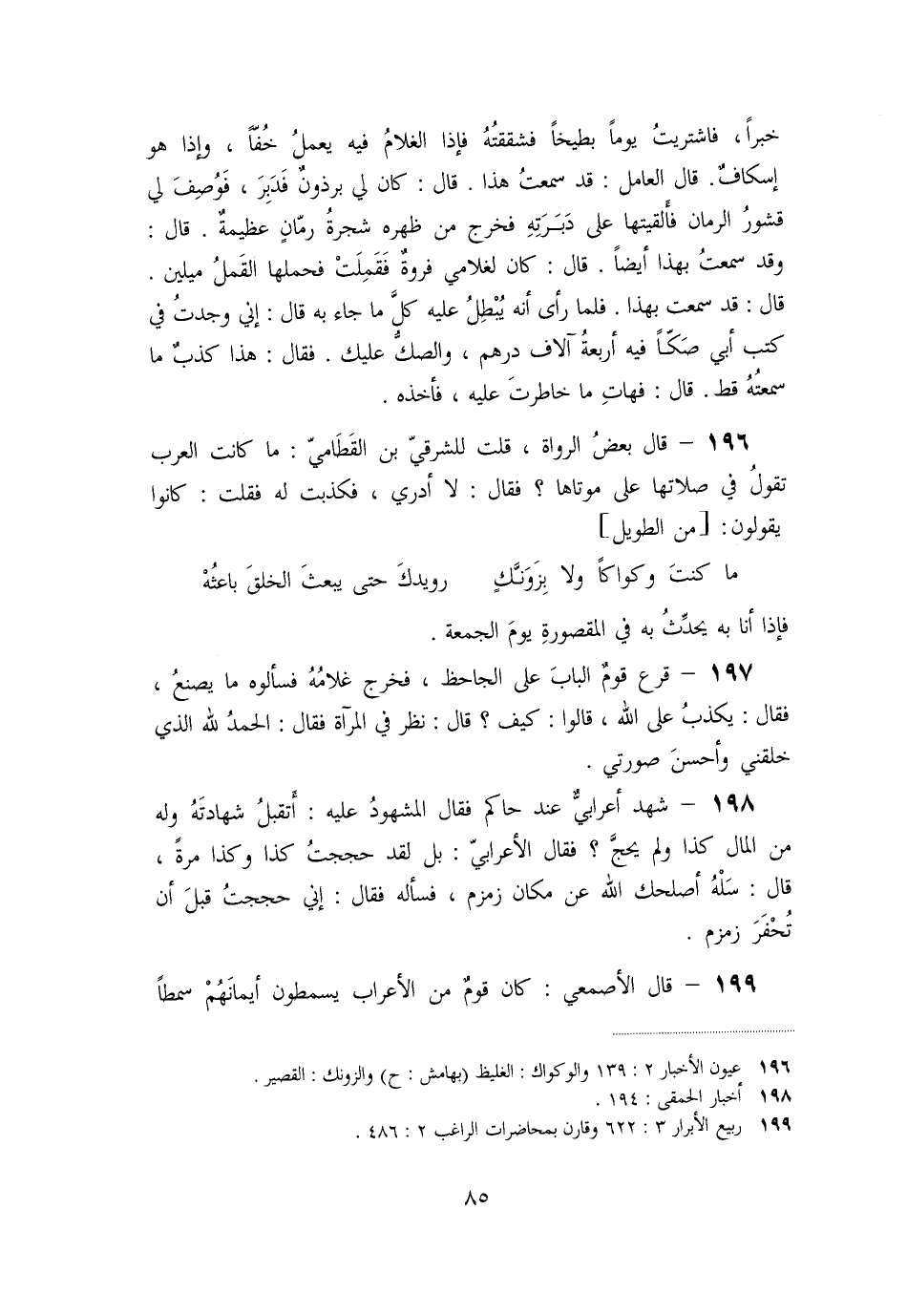 «199» - قال الأصمعي: كان قوم من الأعراب يسمطون أيمانهم سمطا