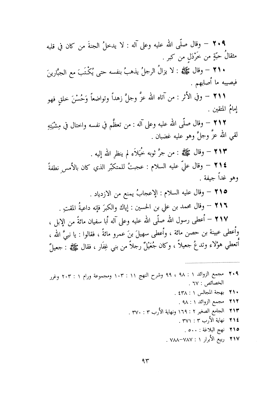«209» - وقال صلّى الله عليه وعلى آله: لا يدخل الجنة من كان في قلبه مثقال حبّة من خردل من كبر.