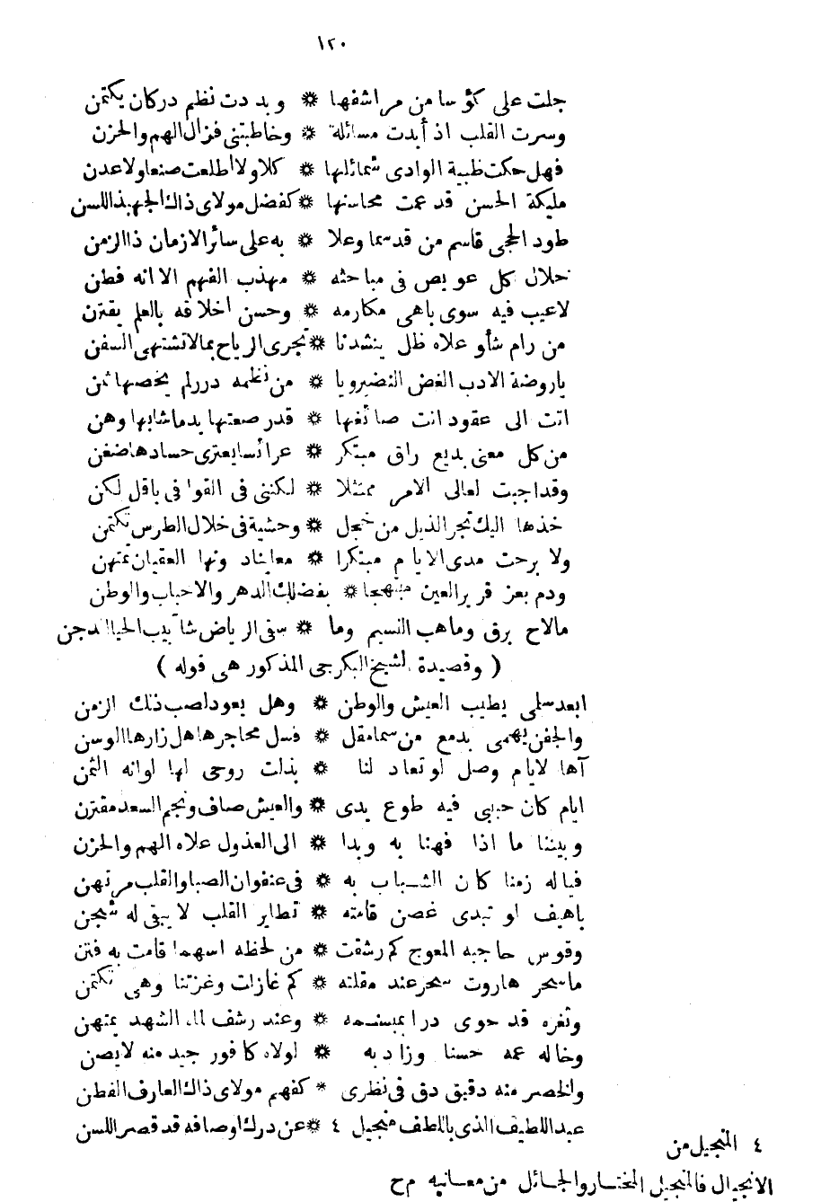 وقصيدة الشيخ البكرجي المذكور هي قوله