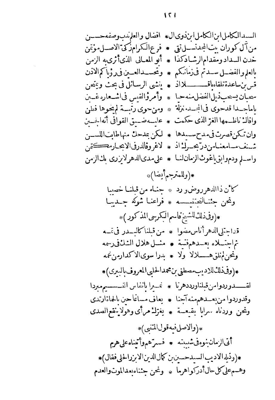 وذيله الأديب السيد حسين بن كمال الدين الأبزر الحلي فقال