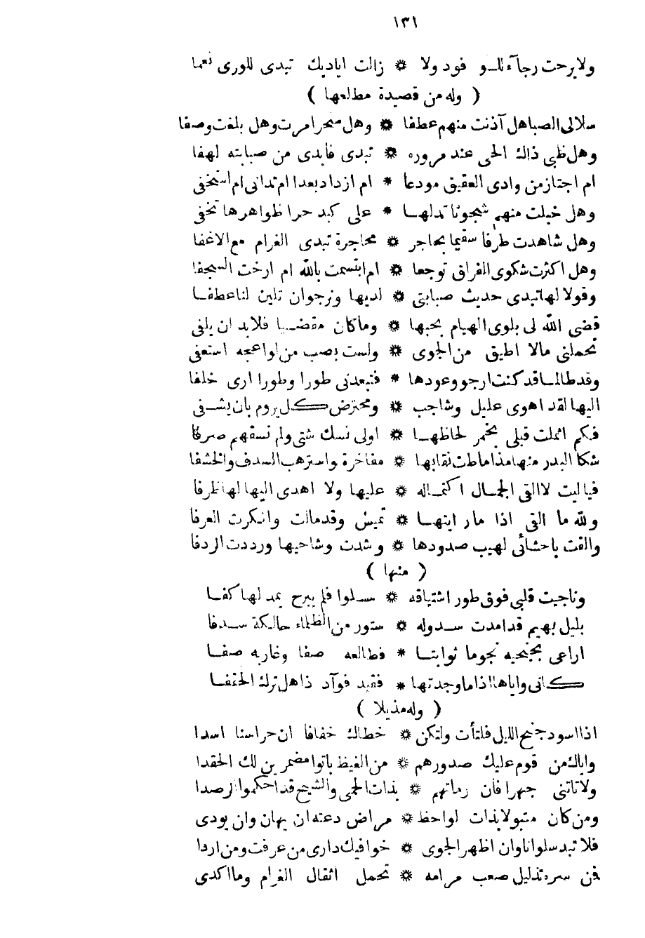 وهل ظبي ذاك الحي عند مروره ... تبدي فأيدي من صبابته لهفا
