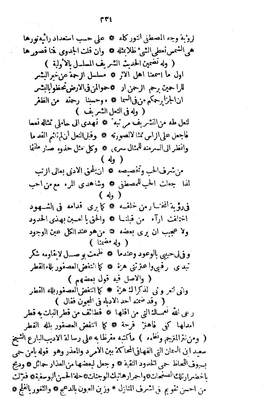 وله تضمين الحديث الشريف المسلسل بالأولية