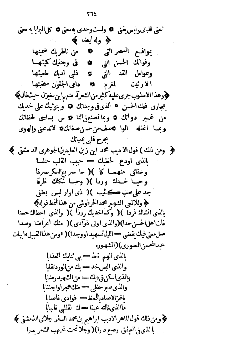 ومن ذلك قول الأديب محمد ابن زين العابدين الجوهري الدمشقي