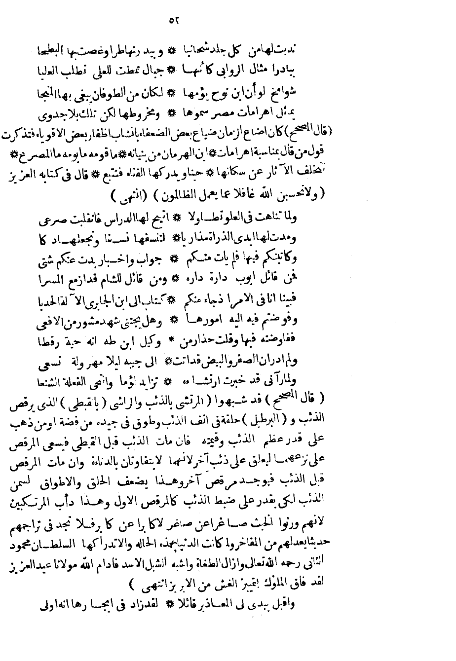 قال المصحح كان أضاع الزمان ضياع بعض الضعفاء بأنشاب أظفار بعض الأقوياء فتذكرت قول من قال بمناسبة أهرامات أين الهرمان من بنيانه ما قومه ما يومه ما المصرع تتخلف الآثار عن سكانها حيناً ويدركها الفناء فتتبع قال في كتابه العزيز ولا تحسبن الله غافلاً عما يعمل الظالمون انتهى