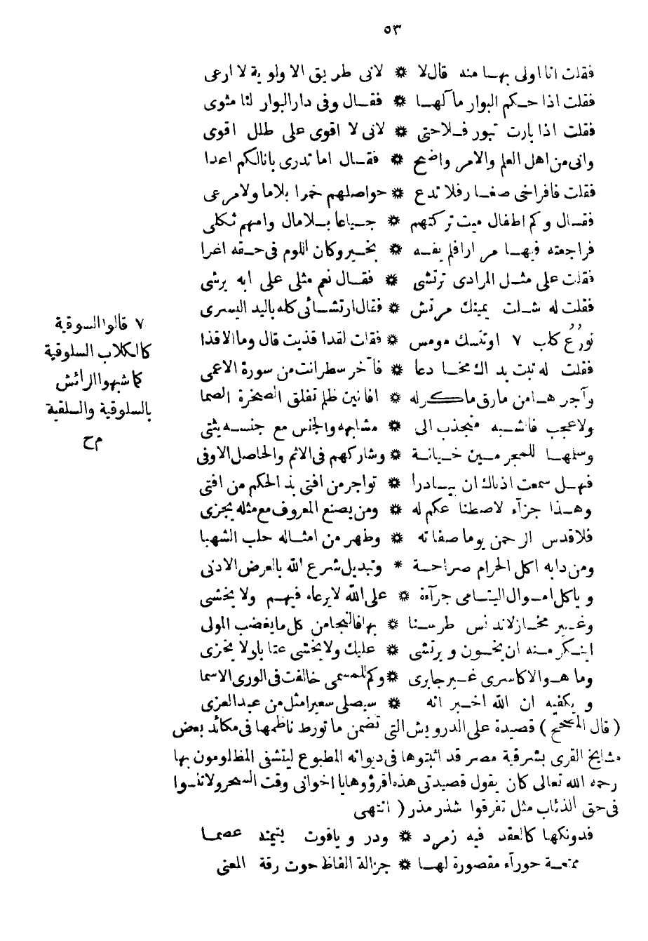 قال المصحح قصيدة علي الدرويش التي تضمن ما تورط ناظمها في مكائد بعض مشايخ القرى بشرقية مصر قد أثبتوها في ديوانه المطبوع ليتشفى المظلومون بها رحمه الله تعالى كان يقول قصيدتي هذه اقرؤوها يا اخواني وقت السحر ولا تنسوا في حق الذئاب مثل تفرقوا شذر مذر انتهى