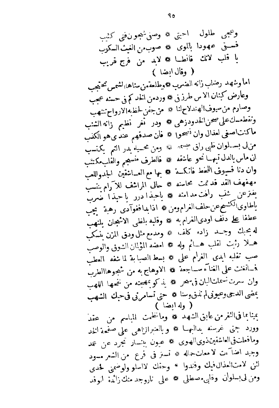 أما وشهد رضاب زانه الضرب ... وطلعة من سناها الشمس تحتجب