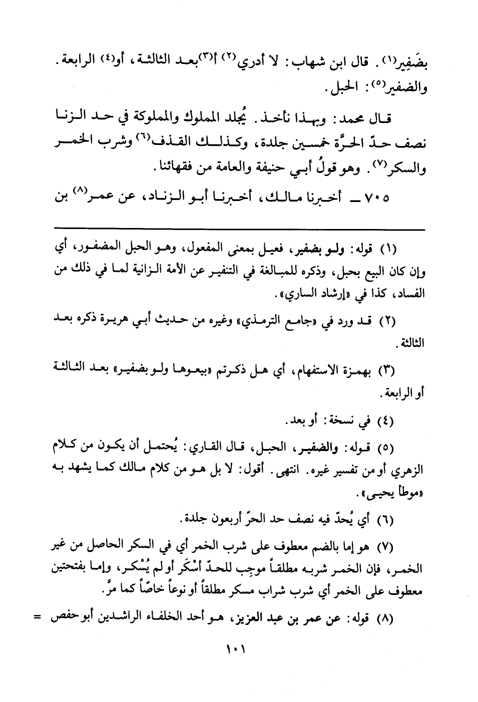 (¬5) قوله: والضفير، الحبل، قال القاري: يُحتمل أن يكون من كلام الزهري أو من تفسير غيره. انتهى. أقول: لا بل هو من كلام مالك كما يشهد به "موطأ يحيى".