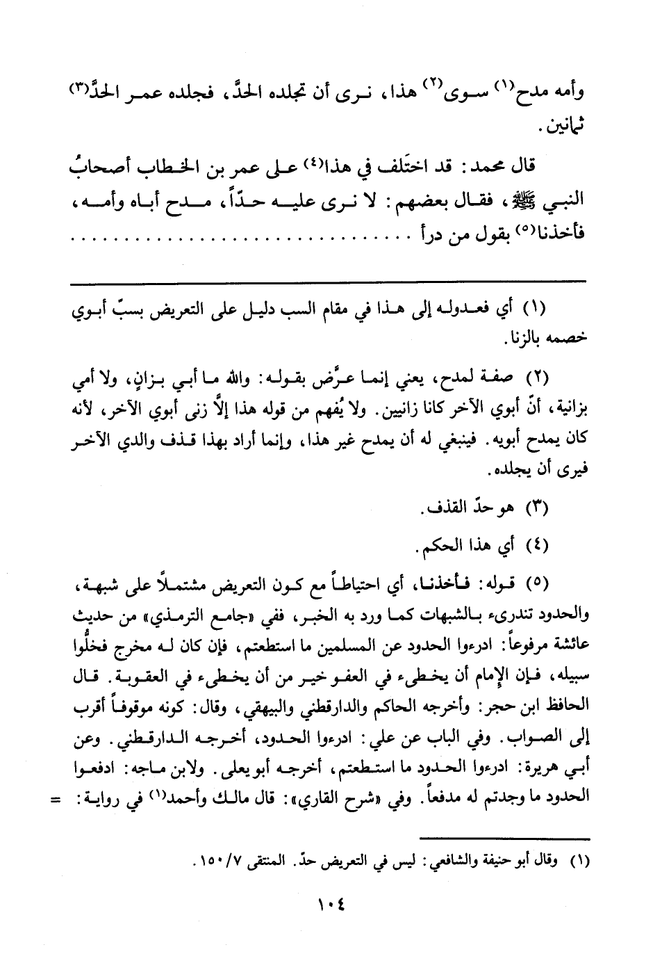 قَالَ مُحَمَّدٌ: قَدِ اختَلف فِي هَذَا (¬4) عَلَى عُمَرَ بْنِ الْخَطَّابِ أصحابُ النَّبِيِّ صَلَّى اللَّهُ عَلَيْهِ وَسَلَّمَ، فَقَالَ بَعْضُهُمْ: لا نَرَى عَلَيْهِ حَدًّا، مَدَحَ أَبَاهُ وَأُمَّهُ، فَأَخَذْنَا (¬5) بقول من درأ