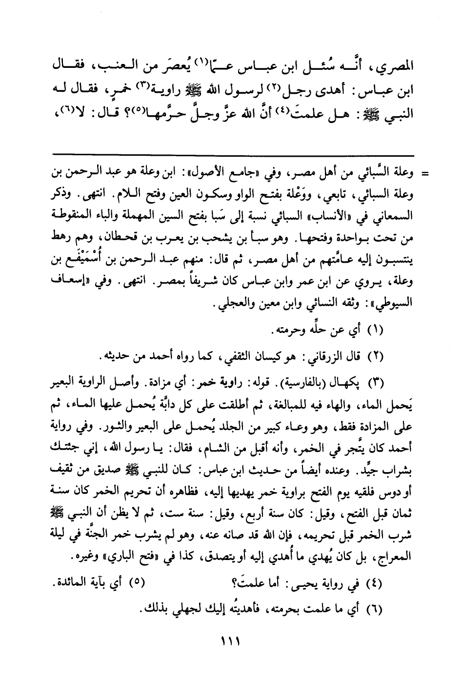 الْمِصْرِيِّ، أنَّه سُئل ابْنُ عَبَّاسٍ عَمَّا (¬1) يُعصرَ مِنَ الْعِنَبِ، فَقَالَ ابْنُ عَبَّاسٍ: أَهْدَى رَجُلٌ (¬2) لِرَسُولِ اللَّهِ صَلَّى اللَّهُ عَلَيْهِ وَسَلَّمَ رَاوِيَةَ (¬3) خمرٍ، فَقَالَ لَهُ النَّبِيُّ صَلَّى اللَّهُ عَلَيْهِ وَسَلَّمَ: هَلْ علمتَ (¬4) أنَّ اللَّهَ عَزَّ وجلَّ حرَّمها (¬5) ؟ قال: لا (¬6) ،