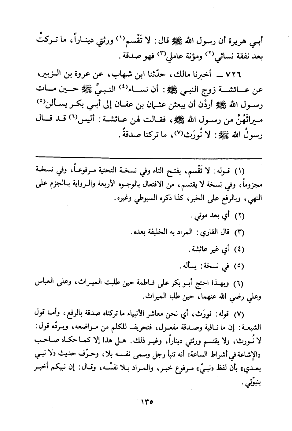 (¬6) وبهذا احتج أبو بكر على فاطمة حين طلبت الميراث، وعلى العباس وعلي رضي الله عنهما، حين طلبا الميراث.